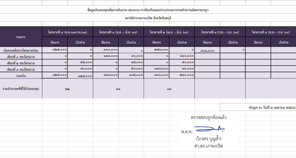 O13 ข้อมูลเงินกองทุนเพื่อการสืบสวน สอบสวน การป้องกันและปราบปรามการกระทําความผิดทางอาญา