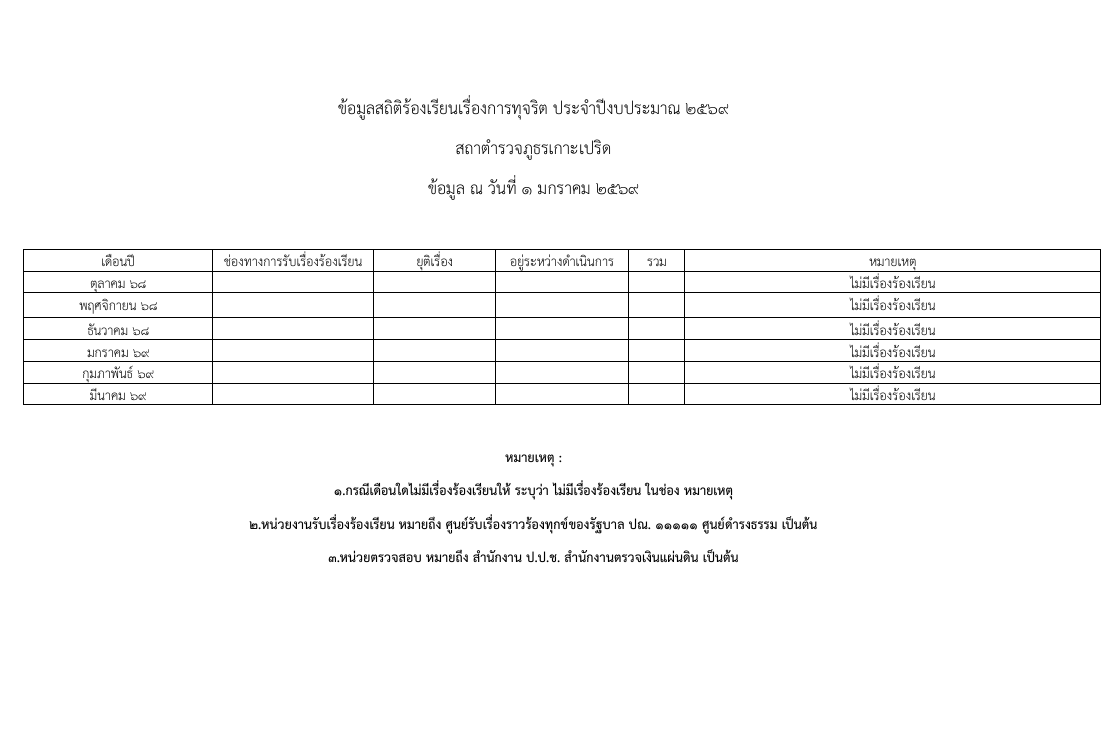 ข้อมูลสถิติเรื่องร้องเรียนการทุจริตและประพฤติมิชอบของเจ้าหน้าที่ของสถานีตำรวจภูธรเกาะเปริด